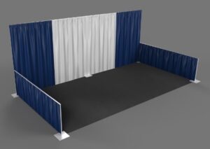 - 8’ back drape and two 3’ side drapes (corner and in-lines only).