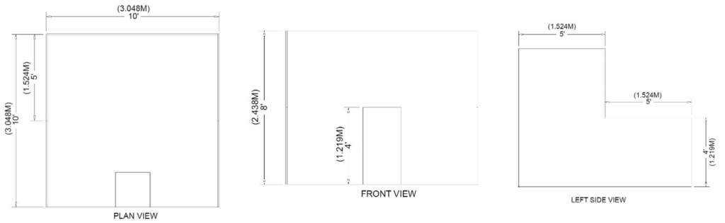 - All dimensions in inches or feet (including heights and applicable setbacks)